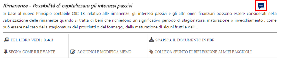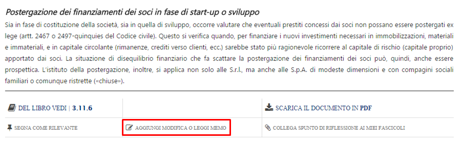 Ad ogni Spunto di riflessione puoi aggiungere un Memo, al fine di prendere nota di Tuoi richiami e osservazioni.