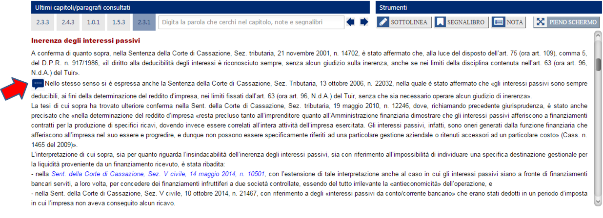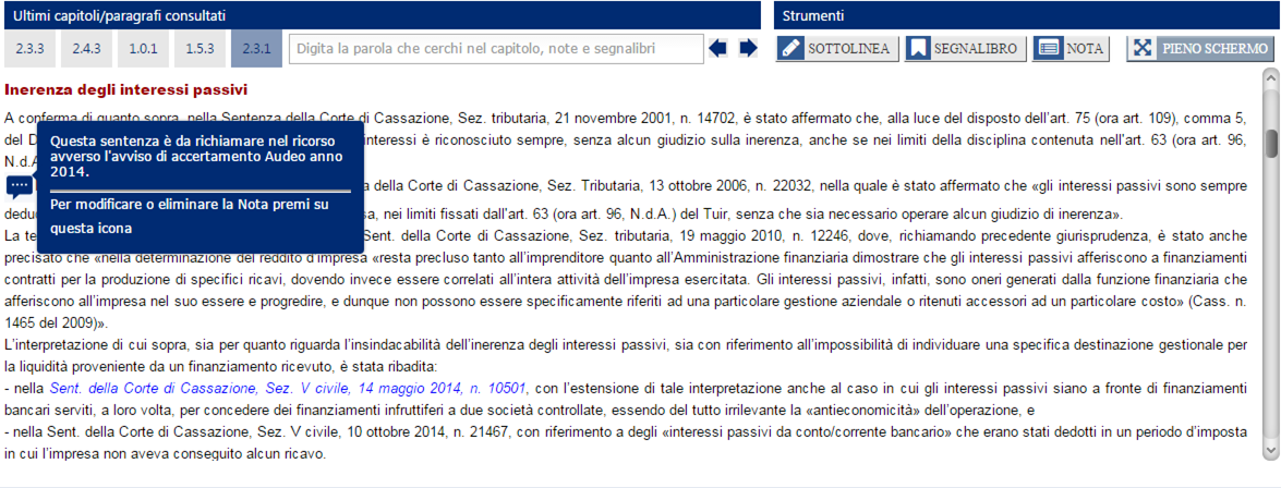 La Nota sarà inserita in corrispondenza del capoverso da Te precedentemente scelto. Passando con il puntatore del mouse sopra la Nota, comparirà il contenuto della stessa, come sotto raffigurato. In alternativa, cliccando sull'icona della Nota come inserita nel testo, si aprirà una finestra nella quale potrai visualizzare e modificare la Nota.