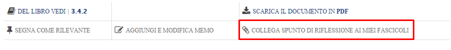 Nella successiva finestra, dedicata alla Tua "personalizzazione" dello Spunto di riflessione, clicca sul pulsante "Collega Spunto di riflessione ai Miei Fascicoli".
