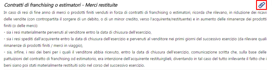 Il fatto che uno Spunto di riflessione sia collegato ad uno o più dei Tuoi Fascicoli è segnalato dalla presenza dell'icona di cui sotto.