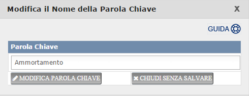 In ogni momento puoi anche procedere a modificare il nome di una Parola Chiave, senza che con ciò Tu perda i collegamenti già esistenti dei Fascicoli alla Parola Chiave in questione.