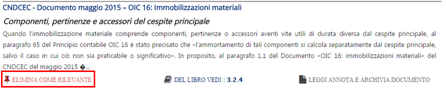 Dopo tale azione il pulsante diventerà "Elimina come rilevante", per il caso in cui Tu volessi, in un secondo tempo, togliere la marcatura di Documento "rilevante".