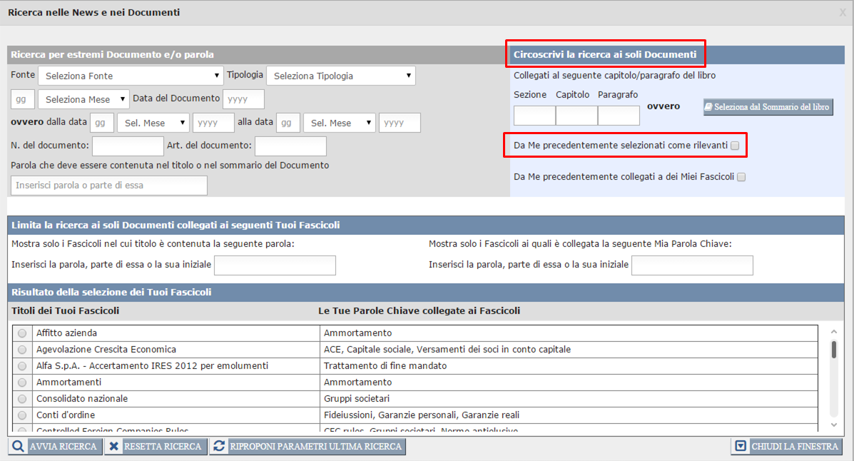 Segnare un Documento come rilevante è utile per poi ritrovarlo più facilmente. Andando, infatti, nella funzione Ricerca Documenti della pagina News e Documentazione, puoi circoscrivere la ricerca dei Documenti a quelli di essi da Te segnati come "rilevanti", eventualmente combinando questa ricerca con anche altri parametri, quali l'anno e/o il mese del Documento o alcune parole chiave di ricerca.