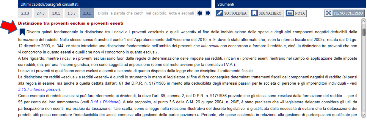 In questo modo il Segnalibro, pur non trovandosi più conservato nel Fascicolo al quale era stato precedentemente da Te collegato, continuerà, comunque, ad essere presente nel testo del libro. Per "eliminare" il Segnalibro devi infatti seguire la procedura più sotto indicata.