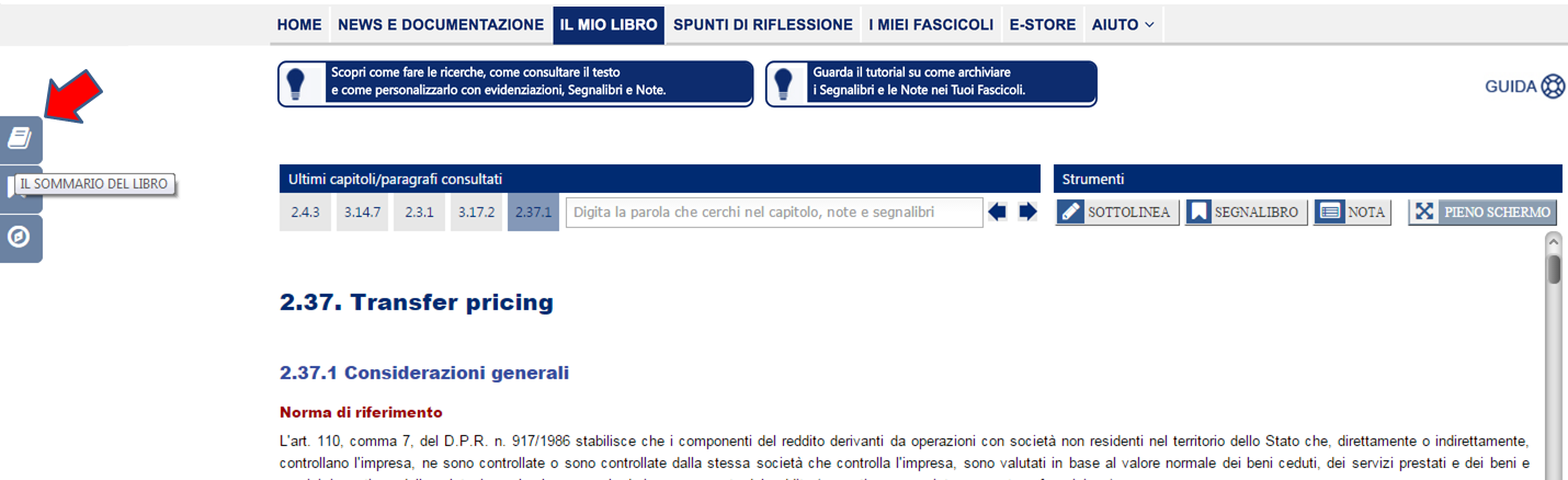 Tieni comunque presente che i capitoli e i paragrafi del Sommario di Tuo interesse sono anche individuabili attraverso lo strumento