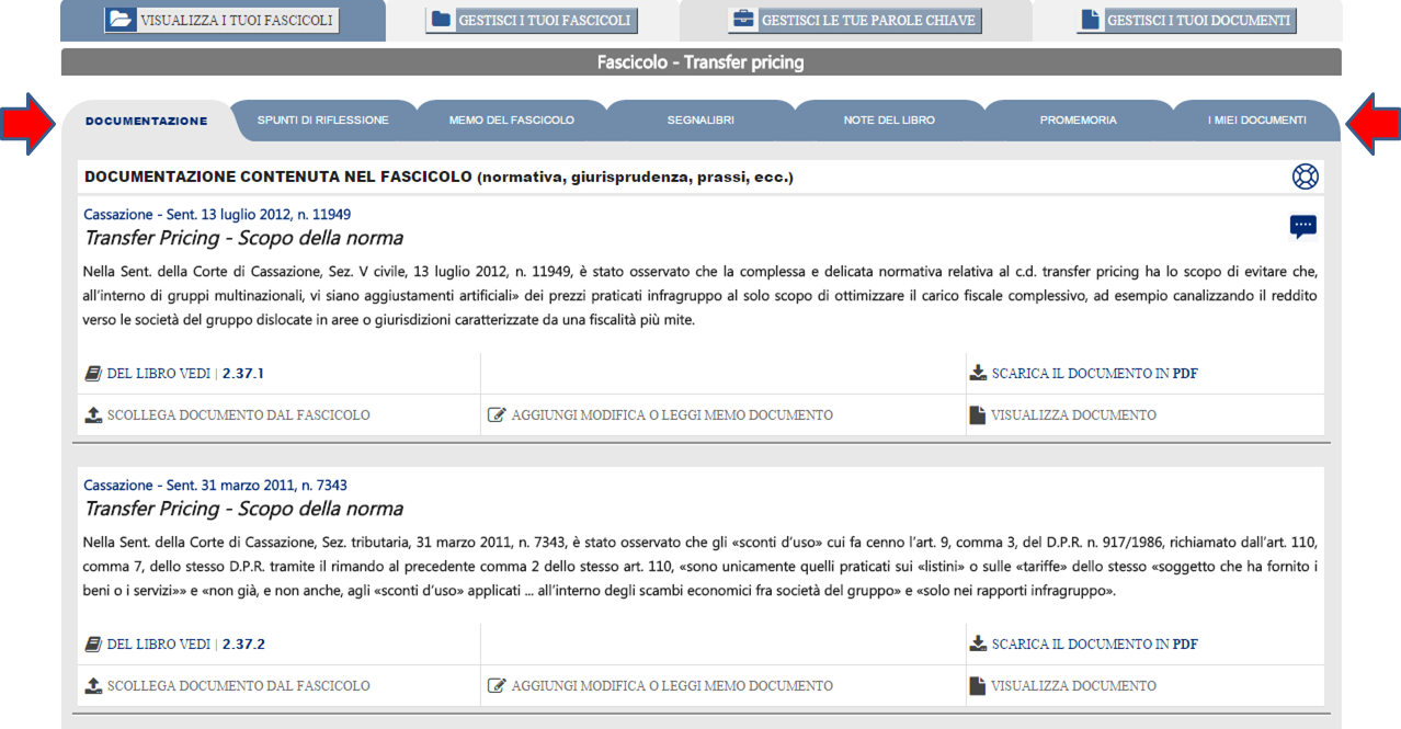 Il contenuto del Fascicolo così selezionato Ti sarà presentato raccolto i sei distinte sezioni: