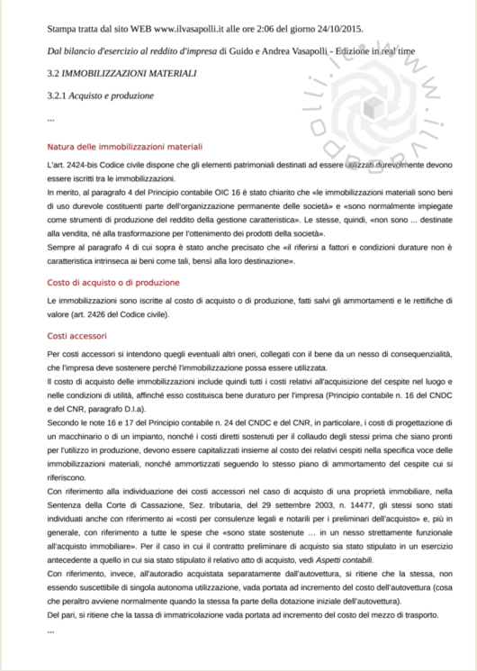 La stampa così creata contiene la data e l'ora in cui è avvenuta l'estrazione del testo dal portale www.ilvasapolli.it, nonché il titolo del capitolo e quello del paragrafo del libro dal quale il testo è stato estratto. Un apposito watermark (filigrana) garantisce che il testo così riprodotto è autentico.