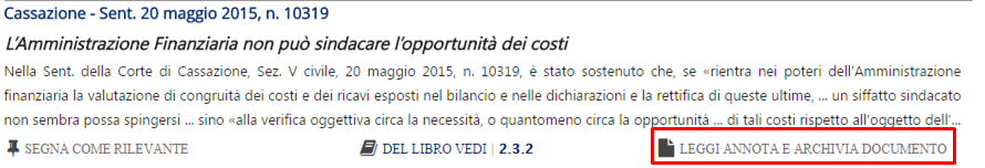 Se desideri visualizzare il contenuto di un Documento (legge, sentenza , circolare, ecc.) della pagina News e Documentazione, o se vuoi salvare nel disco fisso del Tuo computer il file PDF del Documento, clicca sul corrispondente pulsante "Leggi annota e archivia Documento".