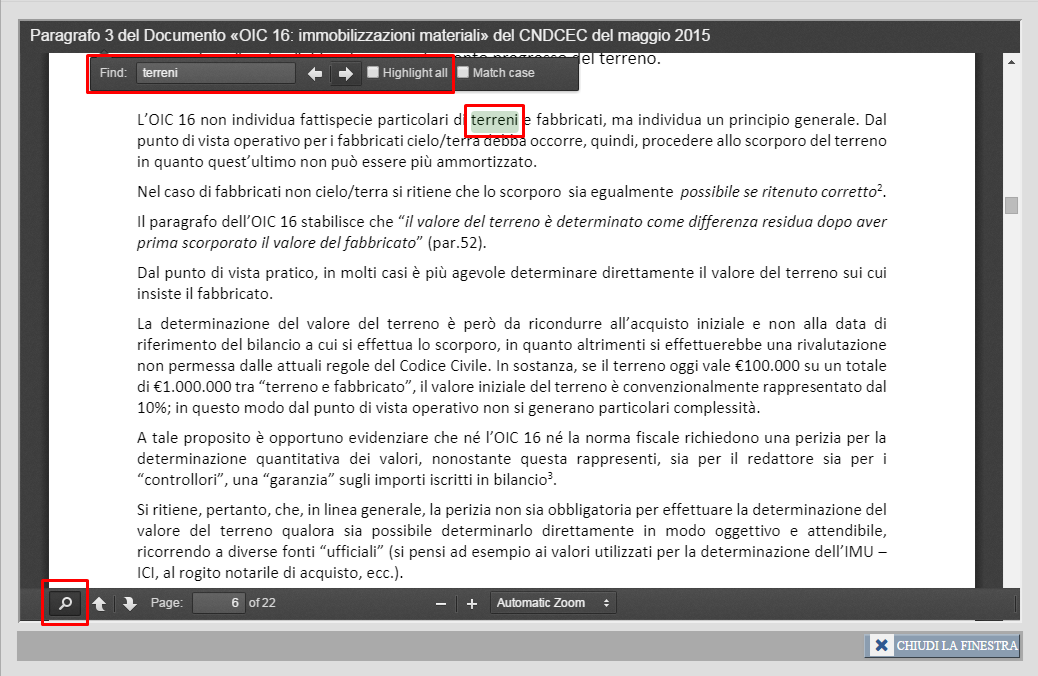 Grazie alla funzione di ricerca per parola incorporata nel visualizzatore di file Pdf, potrai trovare velocemente la parte del Documento che gli Autori hanno citato nel relativo sommario, al fine di poterne leggere direttamente il contenuto.