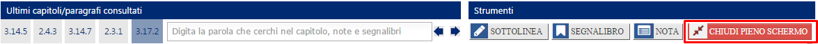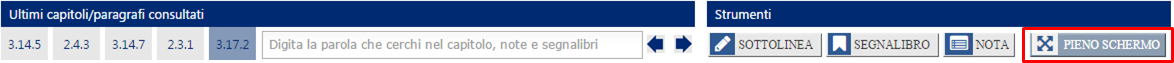 Per passare alla modalità di consultazione del testo "a pieno schermo", clicca sul pulsante "Pieno schermo", in modo da avere una maggiore area visiva in cui visualizzare il contenuto del testo.